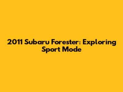 Hey guys! Let's dive into the sport mode of the 2011 Subaru Forester. For those of you who own or are considering owning this model, understanding the sport mode can really enhance your driving experience. We're going to cover what it is, how to use it, and what you can expect when you engage this feature. Buckle up, and let’s get started!