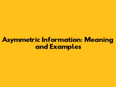 Asymmetric Information: Meaning And Examples