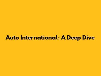 Auto International: A Deep Dive