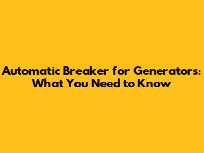 Automatic Breaker For Generators: What You Need To Know