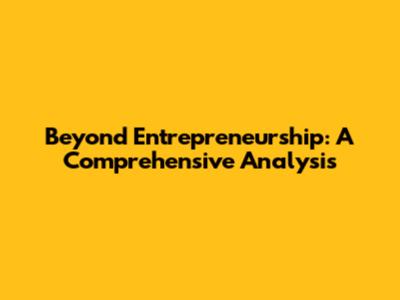 Beyond Entrepreneurship: A Comprehensive Analysis