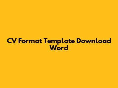 CV Format Template Download Word: Free & Professional
