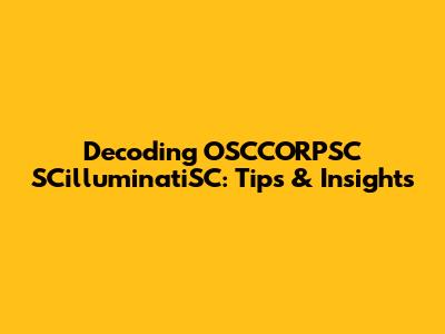 Decoding OSCCORPSC SCilluminatiSC: Tips & Insights
