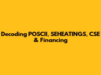 Decoding POSCII, SEHEATINGS, CSE & Financing