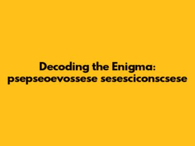 Decoding Psepseoevossese Sesesciconscsese: A Comprehensive Guide
