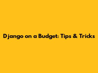 Django On A Budget: Tips & Tricks