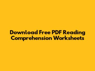 Download Free PDF Reading Comprehension Worksheets
