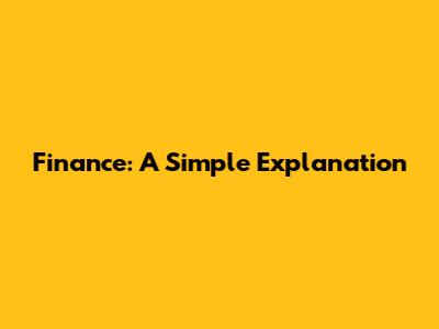 Finance: A Simple Explanation
