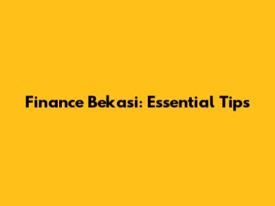 Finance Bekasi: Essential Tips