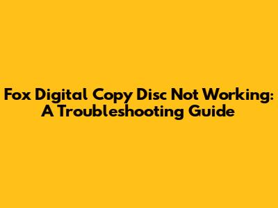 Diagnosing the Problem: Why Isn't Your Fox Digital Copy Disc Working?