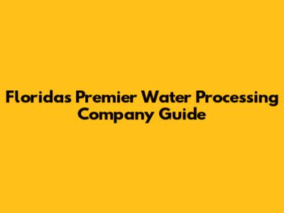 Florida's Premier Water Processing Company Guide