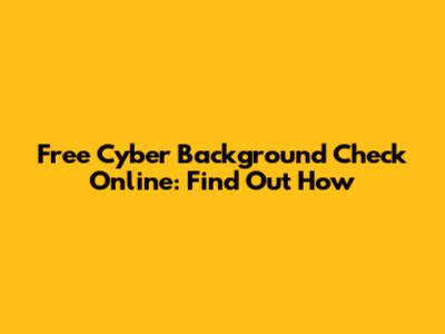 Free Cyber Background Check Online: Find Out How