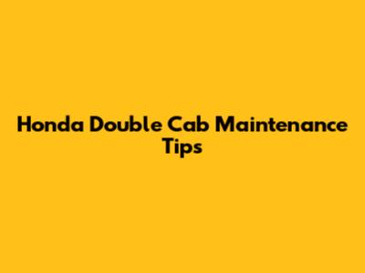 Honda Double Cab Maintenance Tips