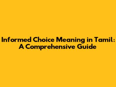 Informed Choice Meaning In Tamil: A Comprehensive Guide