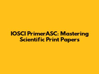 IOSCI PrimerASC: Mastering Scientific Print Papers