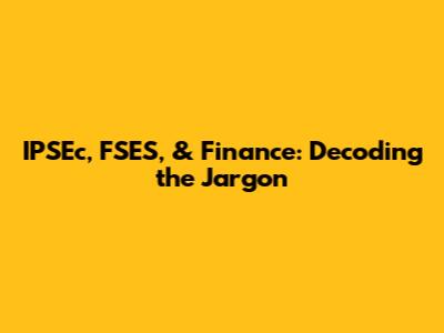 IPSEc, FSES, & Finance: Decoding The Jargon