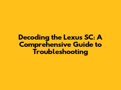 Lexus SC: Decoding The Code And Troubleshooting