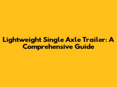 Lightweight Single Axle Trailer: A Comprehensive Guide