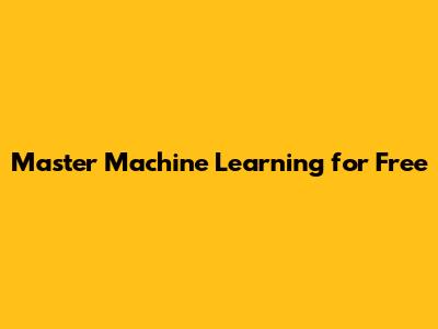 Master Machine Learning For Free