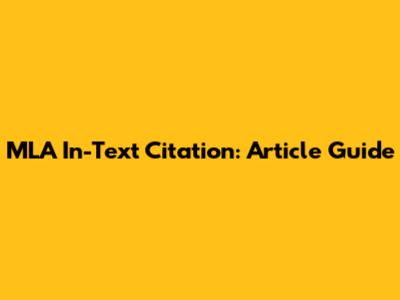MLA In-Text Citation: Article Guide