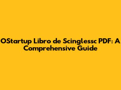 O'Startup Libro De Scinglessc PDF: A Comprehensive Guide