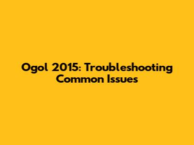 Hey guys! Let's dive into some common problems you might encounter with Ogol 2015 and how to tackle them head-on. Whether you're a seasoned user or just getting started, understanding these issues and their solutions can save you a lot of headaches. We'll break down each problem, offering clear and actionable steps to get you back on track. So, buckle up and let's get started!