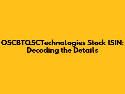 OSCBTQSCTechnologies Stock ISIN: Decoding The Details