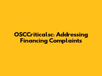 OSCCriticalsc: Addressing Financing Complaints