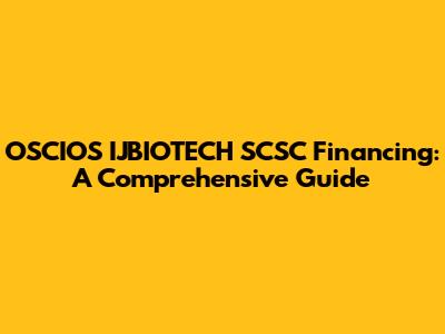 OSCIOS IJBIOTECH SCSC Financing: A Comprehensive Guide