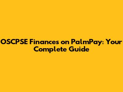 OSCPSE Finances On PalmPay: Your Complete Guide