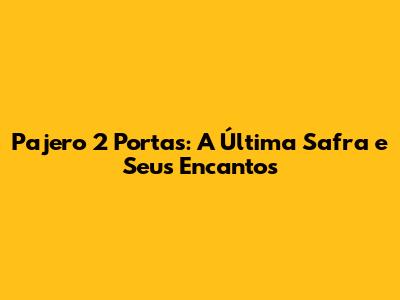 Esses detalhes técnicos, combinados com o design icônico e a reputação de confiabilidade do Pajero 2 Portas, tornam a última safra uma escolha atraente para quem busca um SUV capaz, versátil e com um toque de exclusividade. A atenção aos detalhes e o uso de tecnologias avançadas garantem uma experiência de condução superior, tanto em estradas pavimentadas quanto em trilhas off-road.