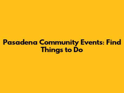 Pasadena Community Events: Find Things To Do