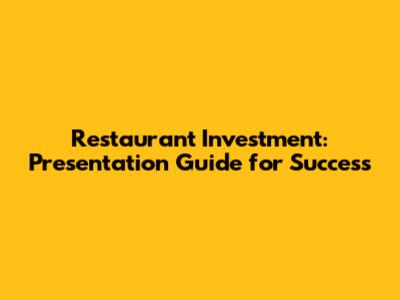 Restaurant Investment: Presentation Guide For Success