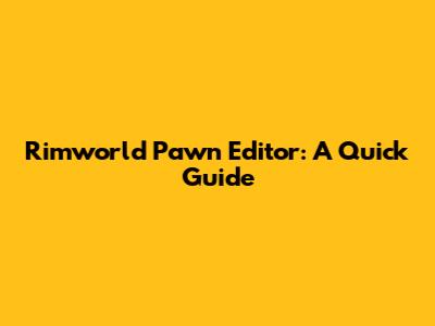 Rimworld Pawn Editor: A Quick Guide