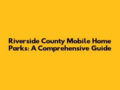 Riverside County Mobile Home Parks: Your Ultimate Guide