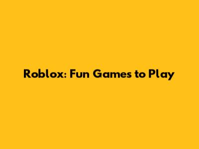 Roblox: Fun Games To Play