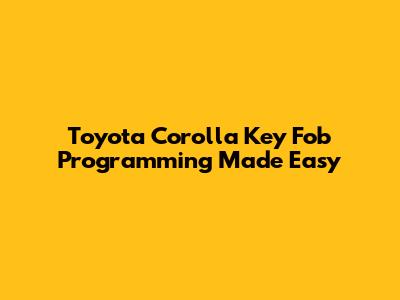 Toyota Corolla Key Fob Programming Made Easy