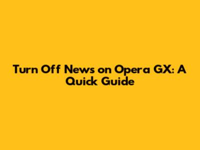 Turn Off News On Opera GX: A Quick Guide