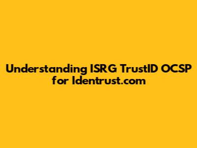 So, how do these pieces fit together? The ISRG TrustID OCSP refers to the OCSP responder operated by ISRG for certificates issued under their trust ID, which may include certificates related to or used by entities like Identrust. When Identrust uses certificates issued by ISRG, or when ISRG certificates are used in conjunction with Identrust's services, the OCSP status of those certificates can be checked using ISRG's OCSP responder.