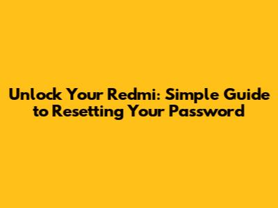 Unlock Your Redmi: Simple Guide To Resetting Your Password