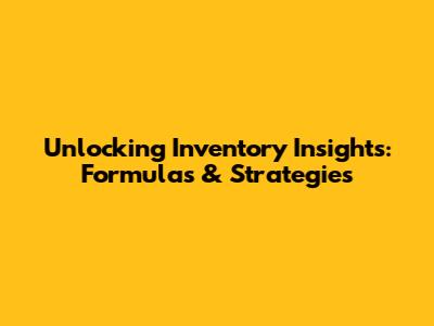Unlocking Inventory Insights: Formulas & Strategies