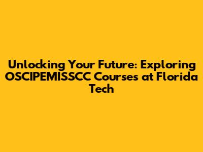 Unlocking Your Future: Exploring OSCIPEMISSCC Courses At Florida Tech
