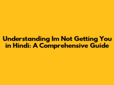 Unpacking 'I'm Not Getting You': Hindi Translation & Usage
